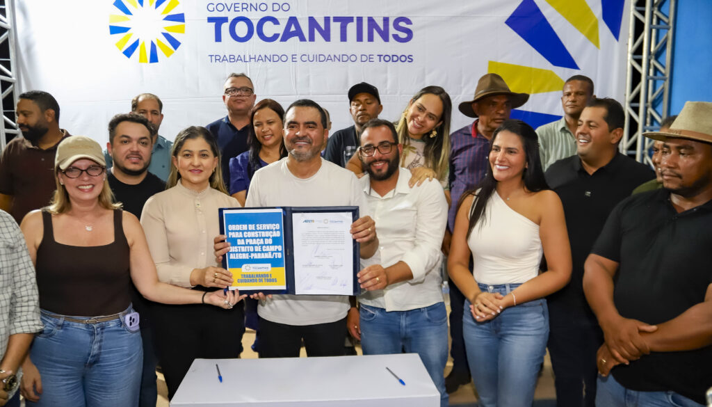 O governador do Tocantins, Wanderlei Barbosa, acompanhado da primeira-dama Karynne Sotero, assinou, neste sábado, 21, a Ordem de Serviço que autoriza a construção da primeira praça pública e de um campo de futebol no distrito de Campo Alegre, em Paranã, na região das Serras Gerais, área que se destaca como um dos principais polos de ecoturismo do estado. Com investimento de R$ 1,9 milhão, a obra reforça a infraestrutura local e fortalece o turismo na região, beneficiando diretamente a população.